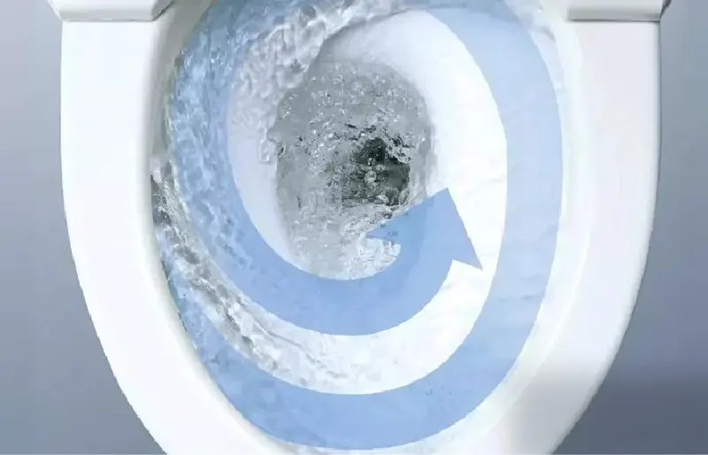 渦を巻くようなトルネード洗浄が、少ない水で効率的に洗浄。汚物が付着しやすい便器後方に勢いよく水が当たるのでしっかり洗浄します。