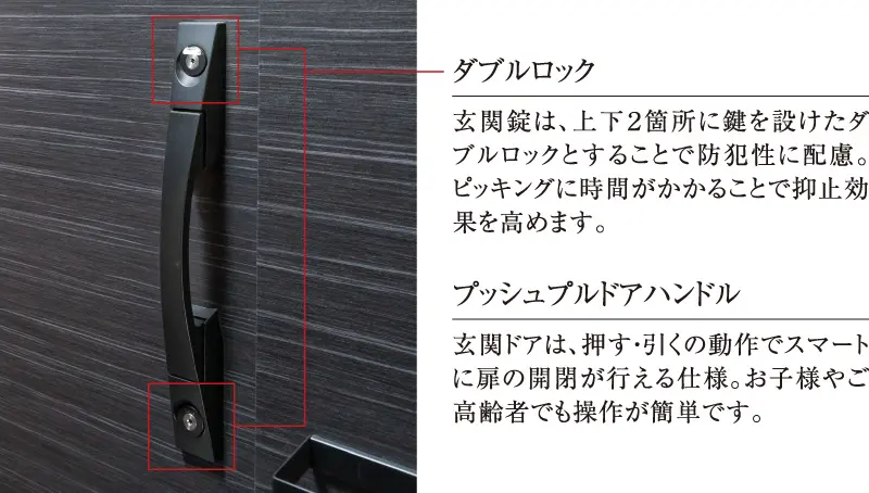 多様なキーパターンと耐ピッキング性能を有した不正複製が困難なディンプルキーシリンダーを採用。操作が簡単なリバーシブルタイプです。