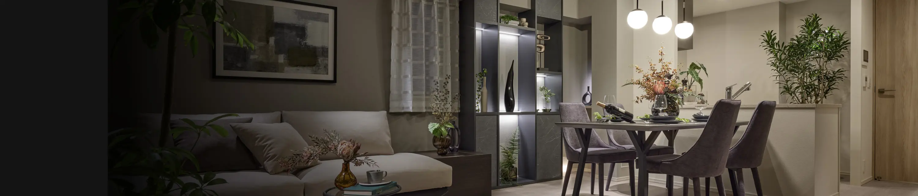 掲載の室内写真はモデルルームEタイプ(405号室)を2024年6月に撮影したものです。また、家具・調度品等は販売価格に含まれておりません。