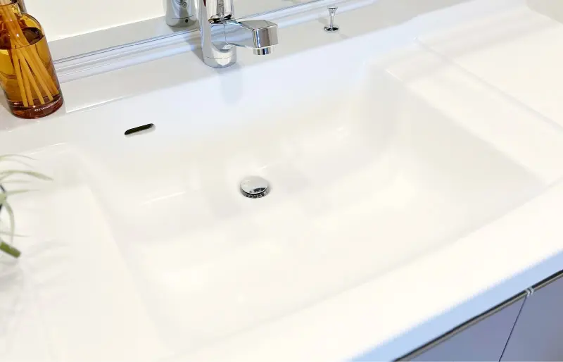 カウンターとボウルに継ぎ目がないため、美しくお手入れしやすい人造大理石カウンター一体型の洗面ボウルを採用。