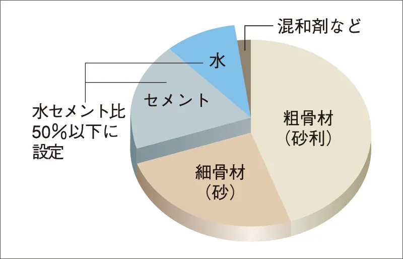 水密性が高く、セメントの水和結晶を緻密に生成させた、耐久性の高いコンクリートを採用しています。