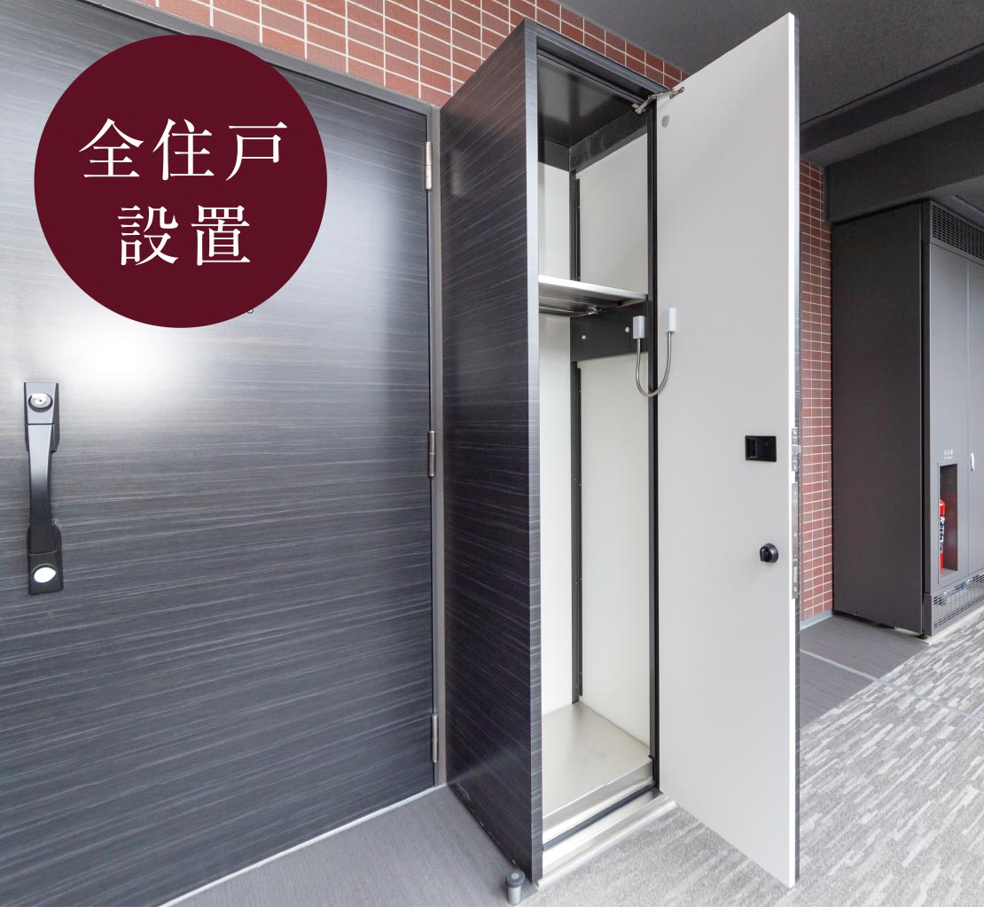 荷物を入れる際、インターホンの呼び出しが必要なため、人物確認・録画でセキュリティを確保。