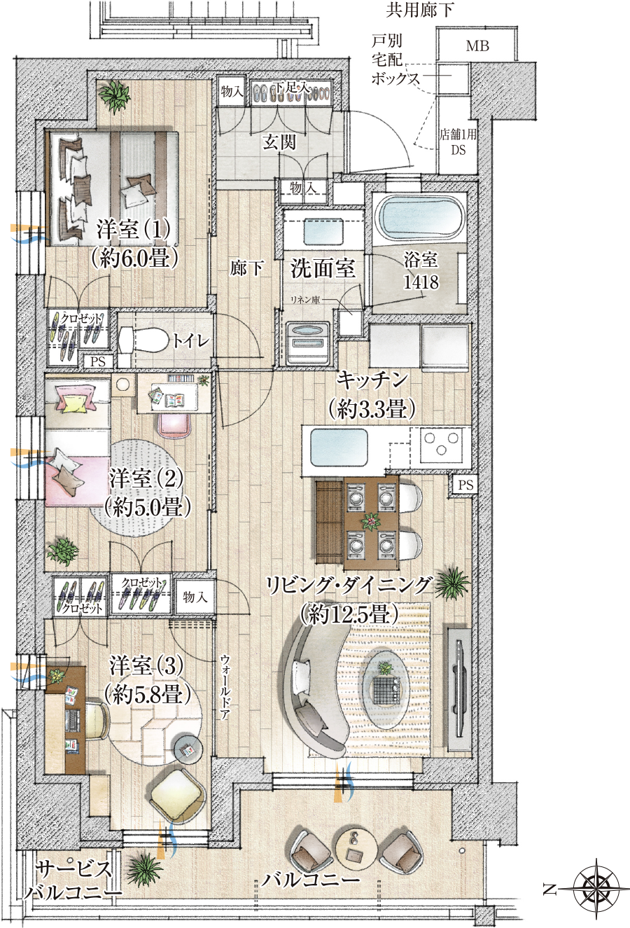 サービスバルコニー面積/1.24㎡(約0.37坪)