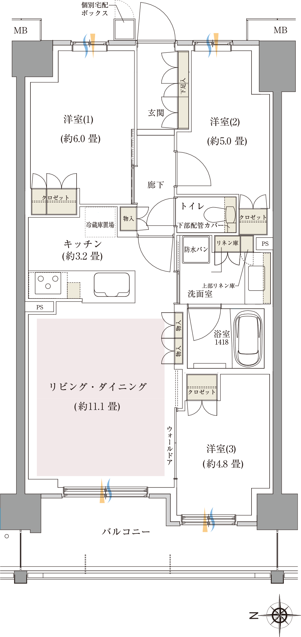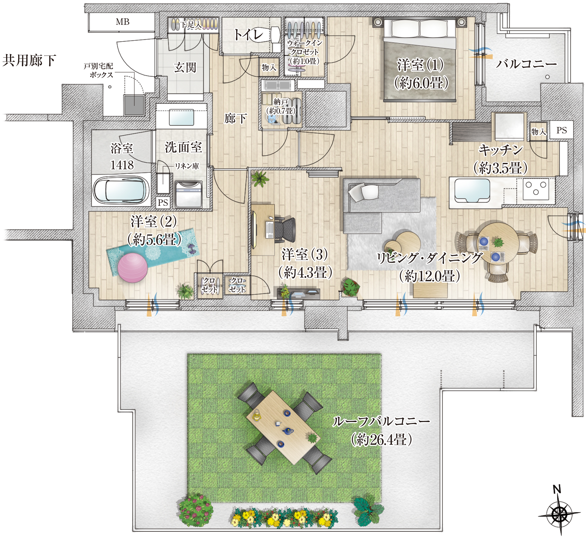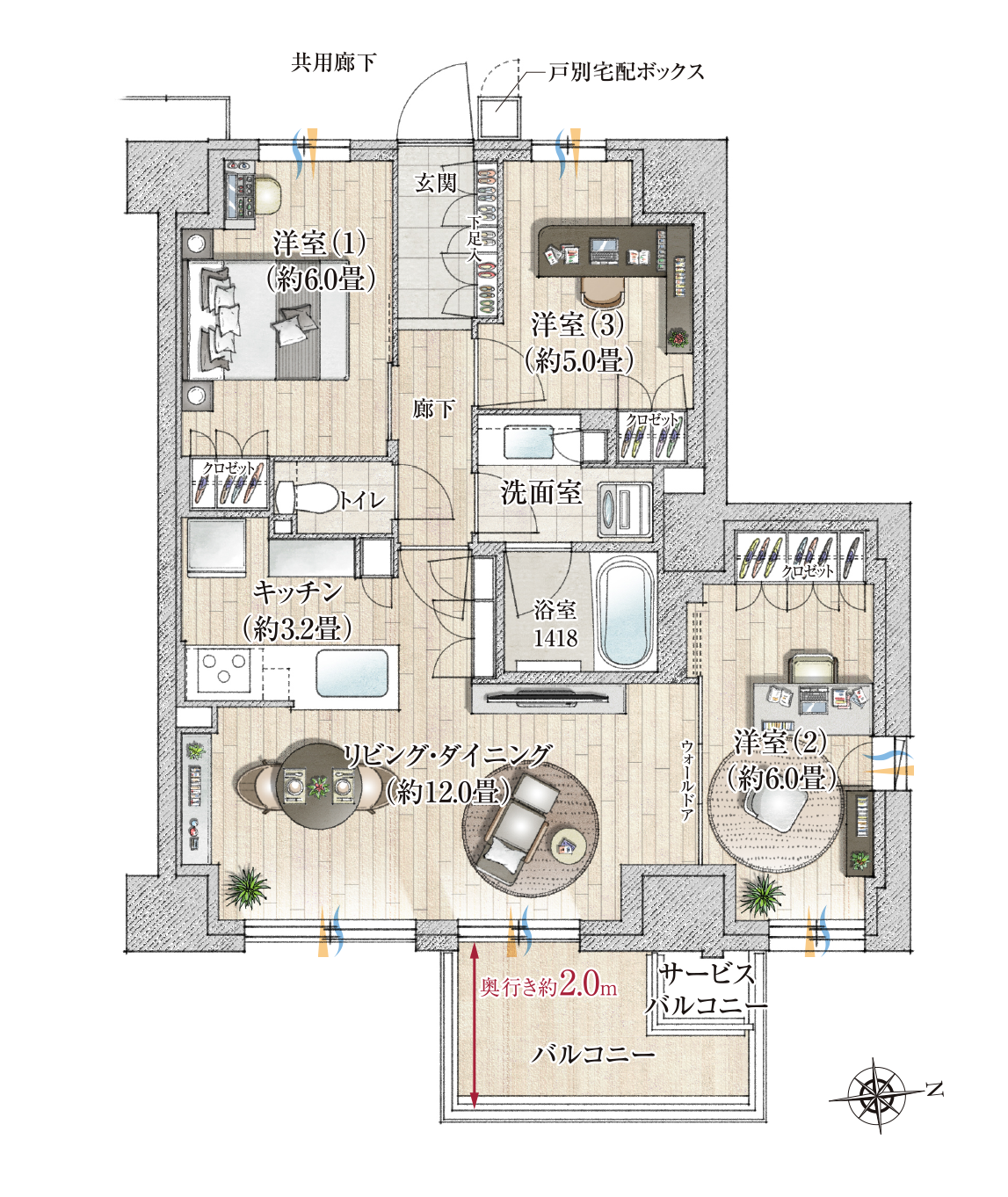 サービスバルコニー面積/1.20㎡(約0.36坪)