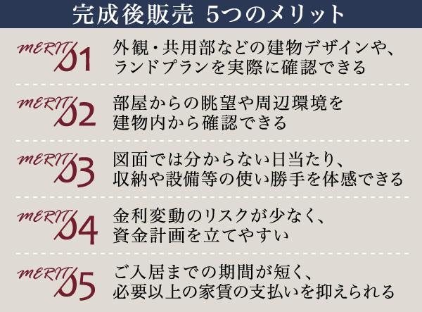 また、住宅ローンについても建物竣工後に融資が行われるので、その時点での金利が適用されます。竣工前に契約した場合、その時点での金利からは変更になる可能性もありますが、竣工済みの場合はその心配は少なくなります(※8)。スムーズに購入・入居が進められるため、新生活を始めやすいのも大きな魅力です。