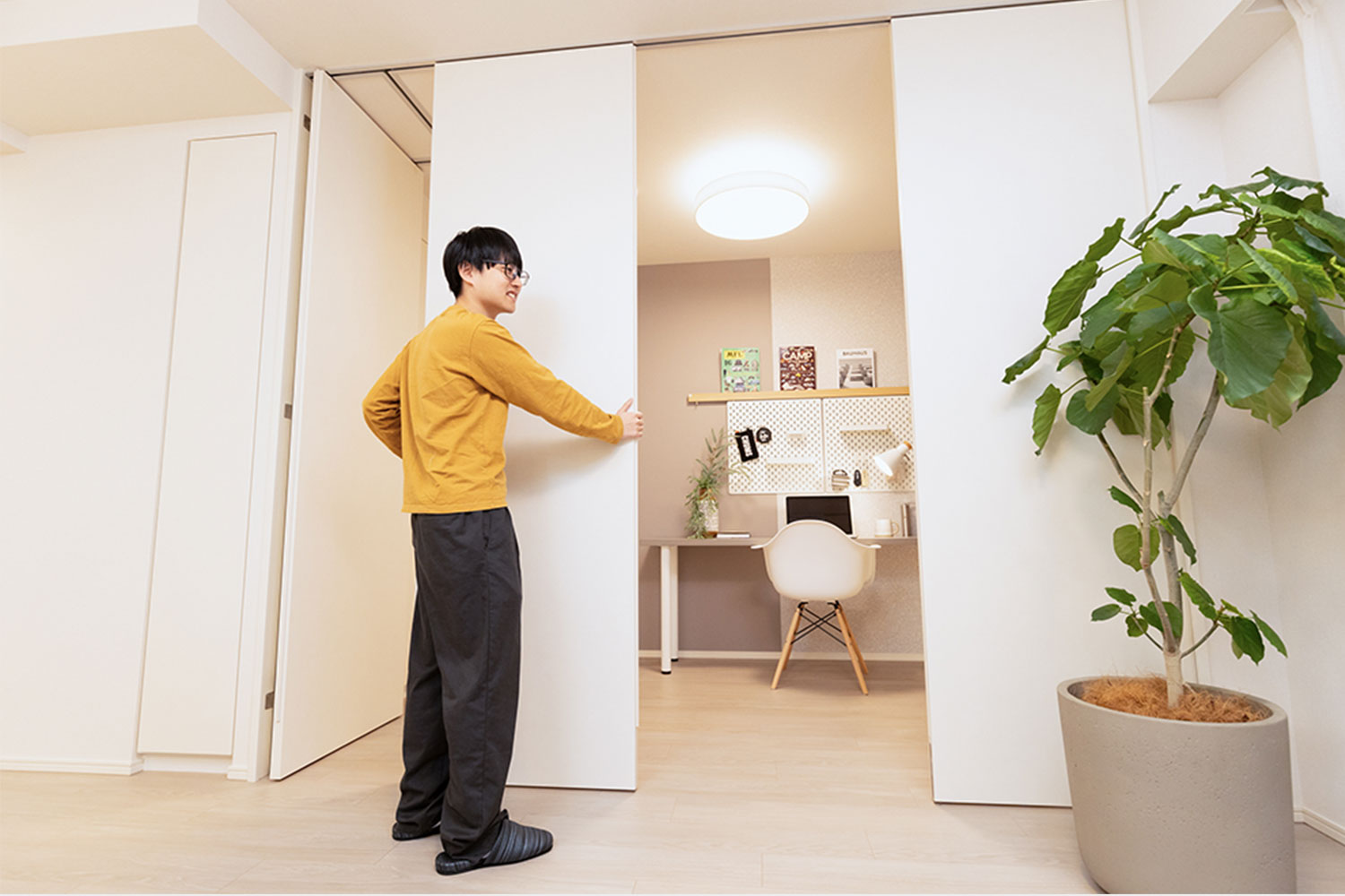 夫:間取りは3LDKで65m2以上の広さを確保している点と、家具が配置しやすい縦型リビングがお気に入りです。また、ウォールドアが付いていて、自由に空間をアレンジできる点もポイントでした。普段は扉を開けて広々と使おうと思っていますが、テレワークの日には扉を閉めて仕事を頑張りたいなと思っています。
