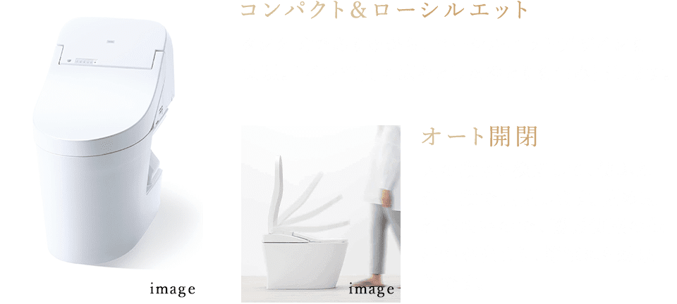 コンパクトでスマートなウォシュレット一体型便器。ローシルエットでトイレ空間がスッキリとし、スペースにゆとりが生まれます。