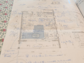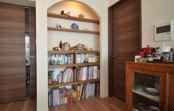 お子様が生まれる前、ドイツ赴任を経験されたお二人。赴任中ヨーロッパ各国を旅した際に購入した、お気に入りのアイテムをディスプレイするために、リビングルームの壁面を利用して飾り棚を造作しました。「実はそのために、洋室ドアのサイズも変更したんですよ」という徹底したこだわりも。間取図にたくさん書き込まれたメモからも、理想の住空間への真摯な気持ちがうかがえます。